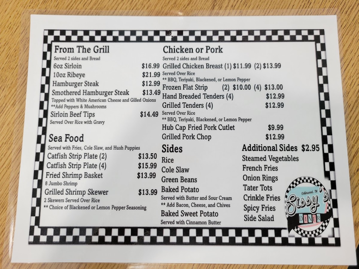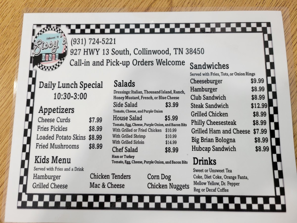 Welcome to Sissy’s Diner, a gem in Collinwood, TN, where American comfort food shines. Nestled conveniently on TN-13, this diner boasts a diverse menu that promises to satisfy every craving. Start your meal with tempting Cheese Curds or Loaded Potato Skins, perfect for sharing among friends.